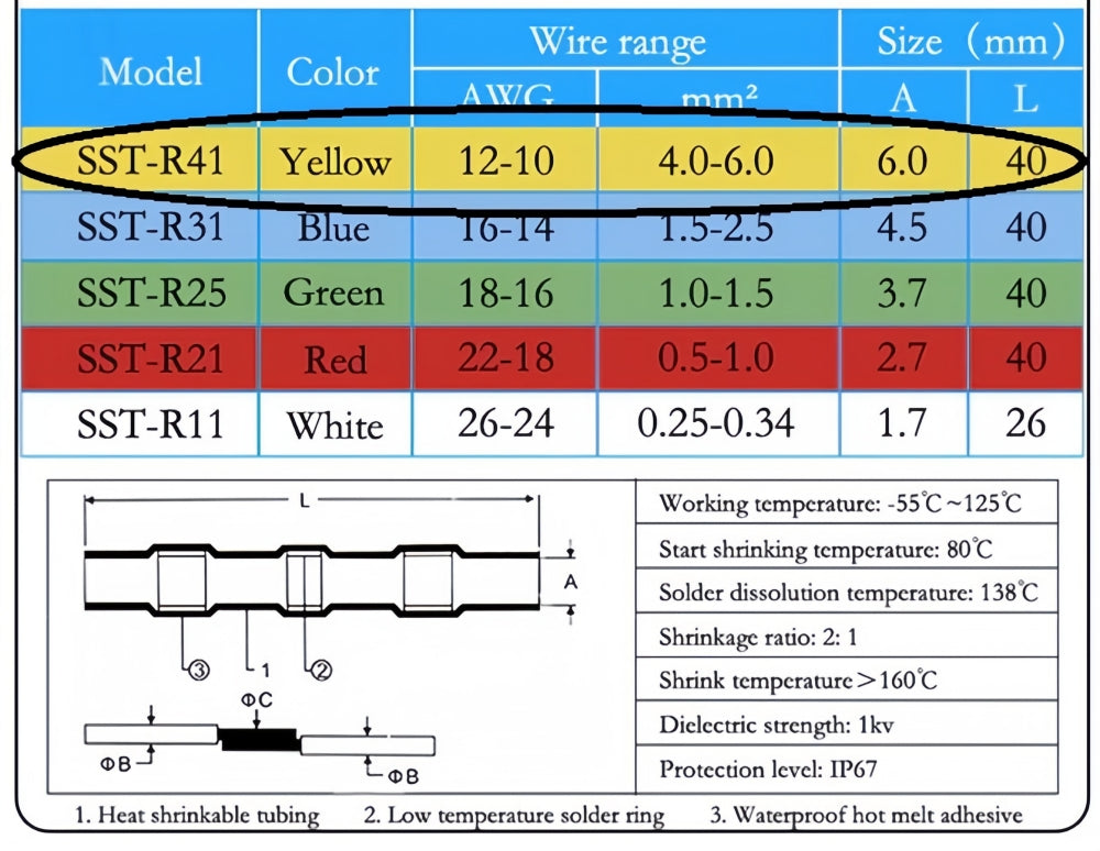 Ideal for any automotive workshop to give a quick easy join with soldering and insulating the join all in one.