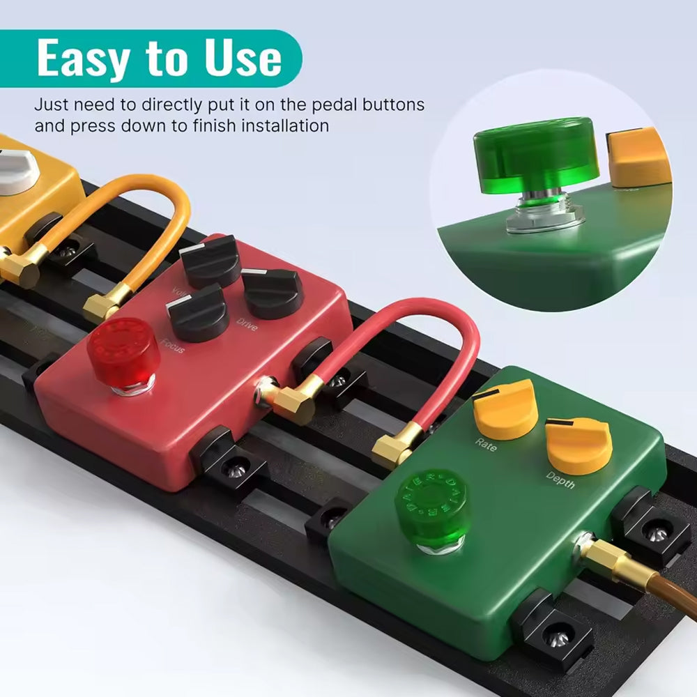 【Easy to Use】 - This guitar pedal topper is the most easily install design, you just need to directly put it on the pedal buttons and press down to finish installation, which requires no additional tools and makes the installation and use much eaiser and more convenient for you.