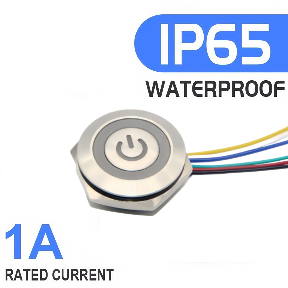 Here we have 22mm Metal Push Button Switch Ultra Thin Blue LED 12-24V Pre-Wired Momentary Self-Reset Switch.