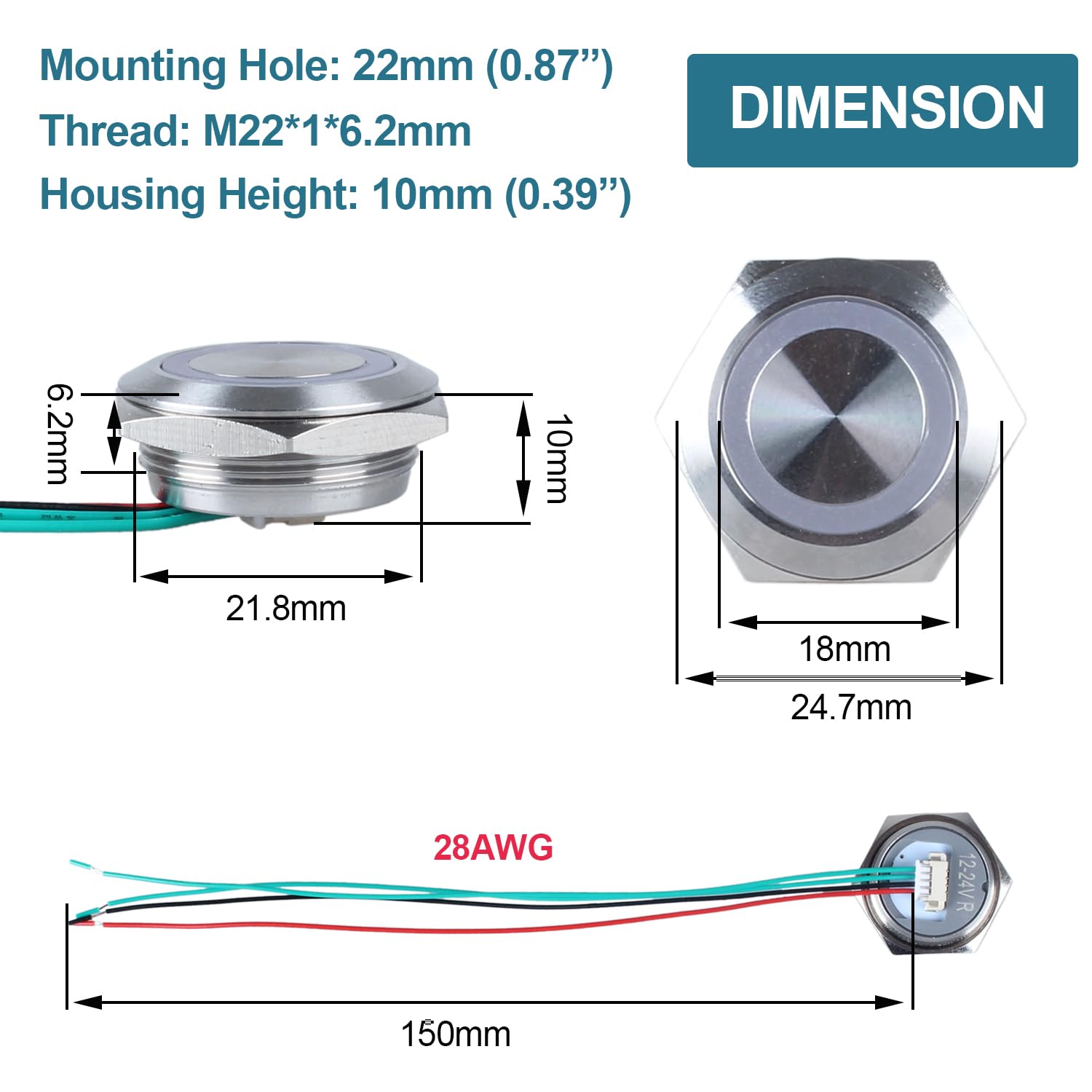 Here we have 22mm Metal Push Button Switch Ultra Thin Blue LED 12-24V Pre-Wired Momentary Self-Reset Switch.
