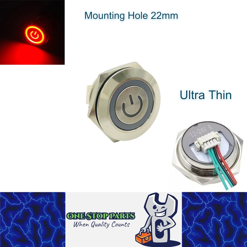 Here we have 22mm Metal Push Button Switch Ultra Thin Red LED 12-24V Pre-Wired Momentary Self-Reset Switch.