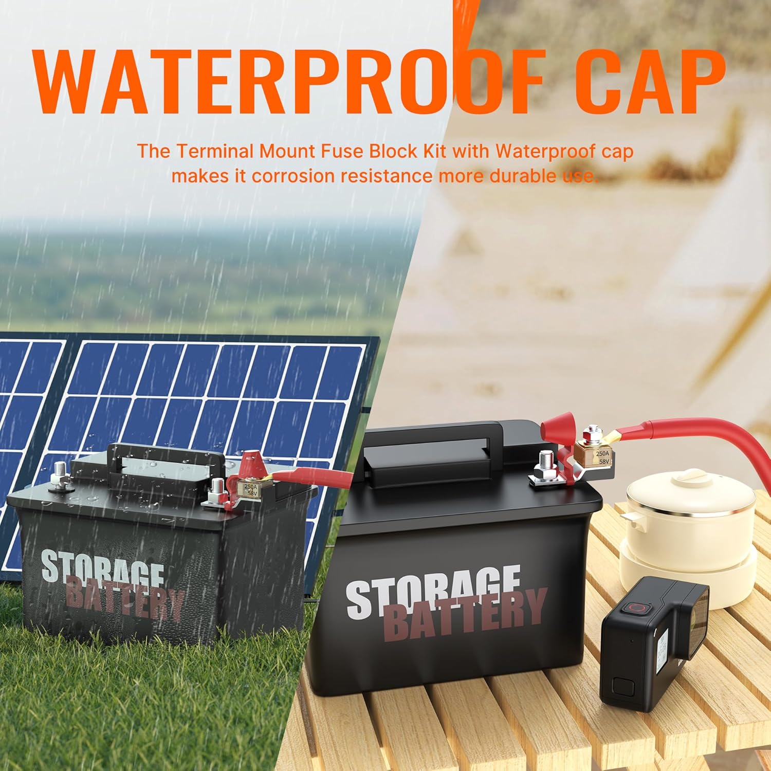 * Easy to Install: The simple construction of battery terminal fuse block makes it very easy to install the device in the car battery through the safe connection of the fuse holder. The small size fuse can also save installation space