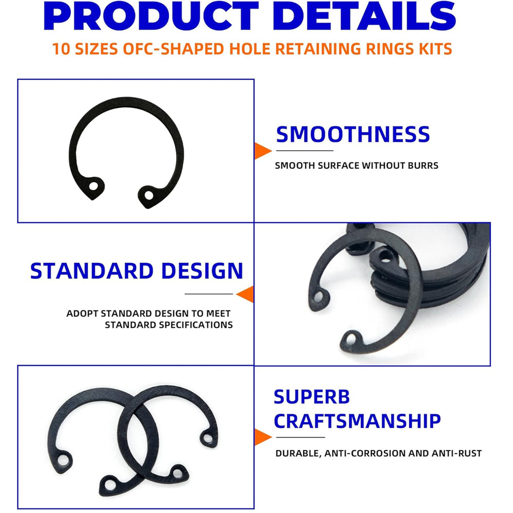 *Premium 65mn Steel:These snap ring assortment kit with black oxide finish, hardened steel with improved tensile strength, corrosion resistance and rust resistance for long time use.