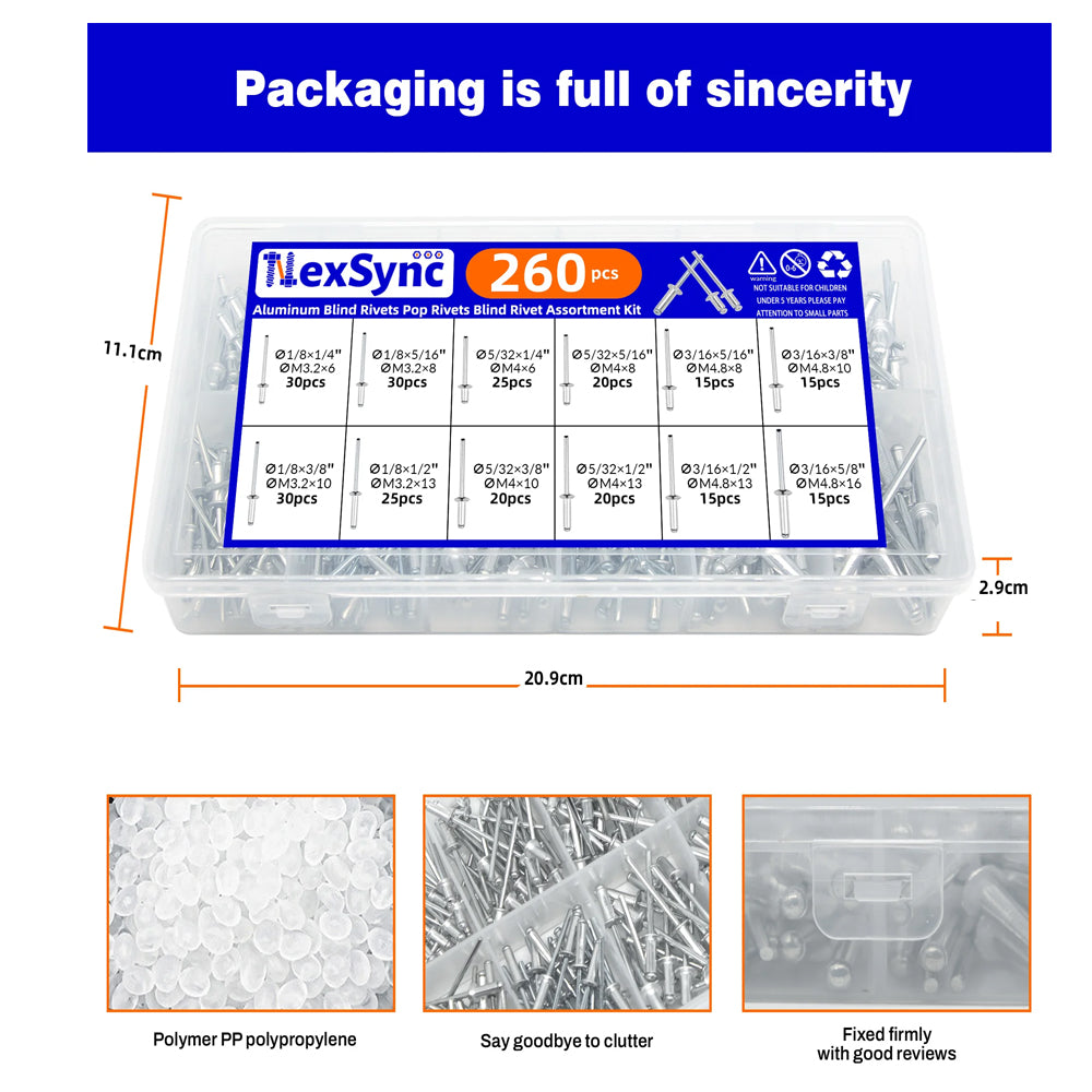 260pcs Pop Rivets Assortment Kit 12 Sizes Aluminum Blind Rivets Furniture & Car