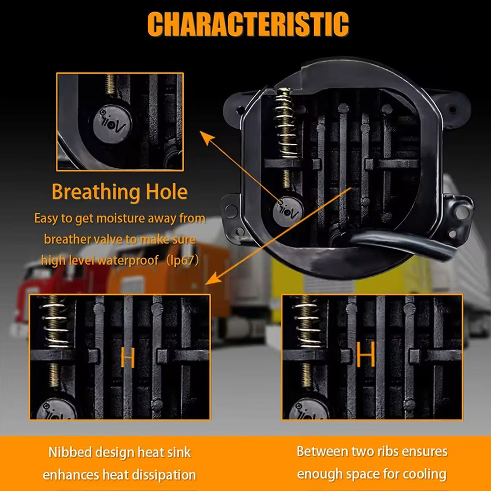 【Three light modes】All Light , Daytime Running Light (DRL) and Amber Turn Signal Light.Fog light provide extra great light to help you driving safely on hard road or bad weather!