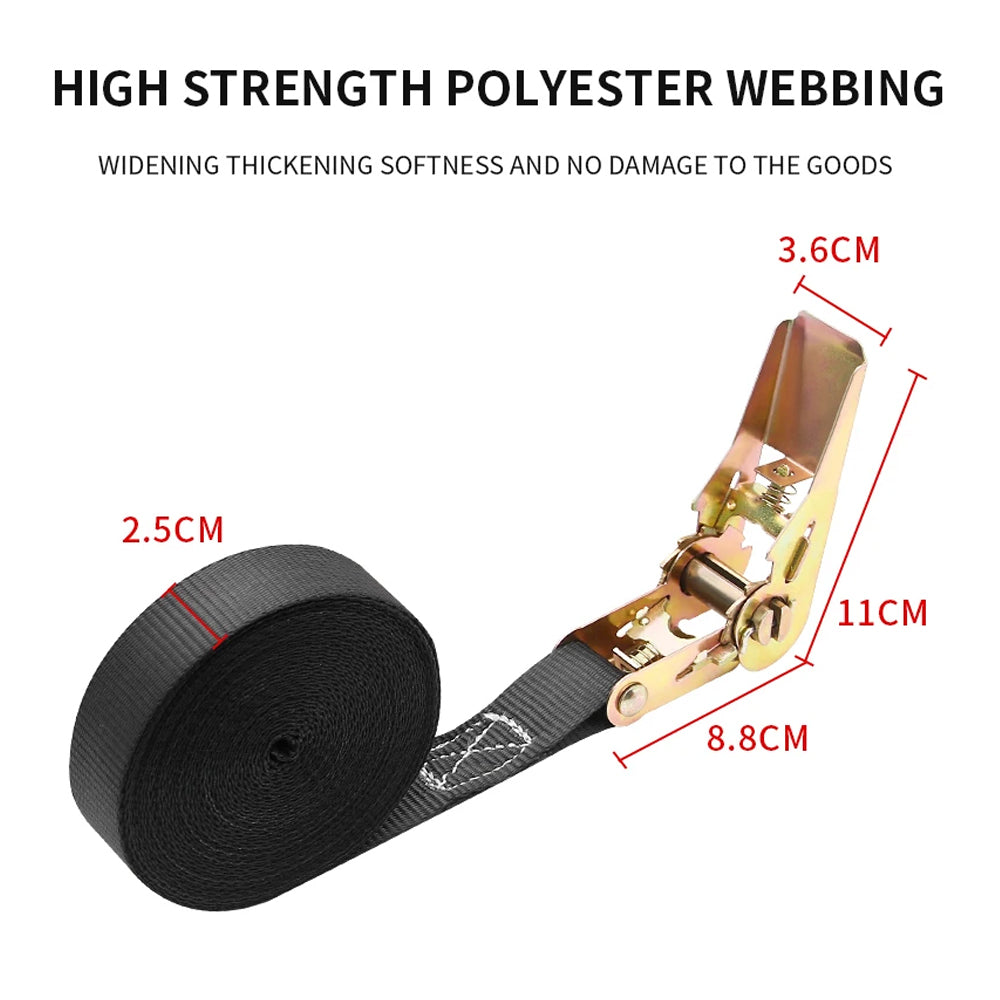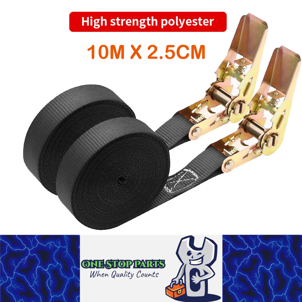 • Extra-Long Polyester Straps: The tie down straps is 10M long and 2.5CM wide. Adjustable length and easy operation allow you to secure luggage and cargo. The ratchet straps are perfect for cars trucks trailers of all sizes.