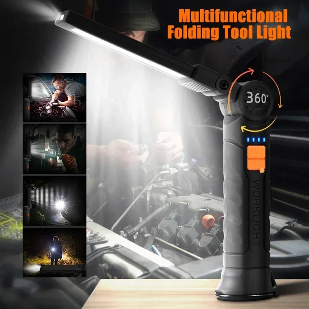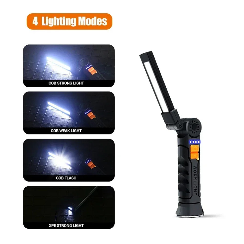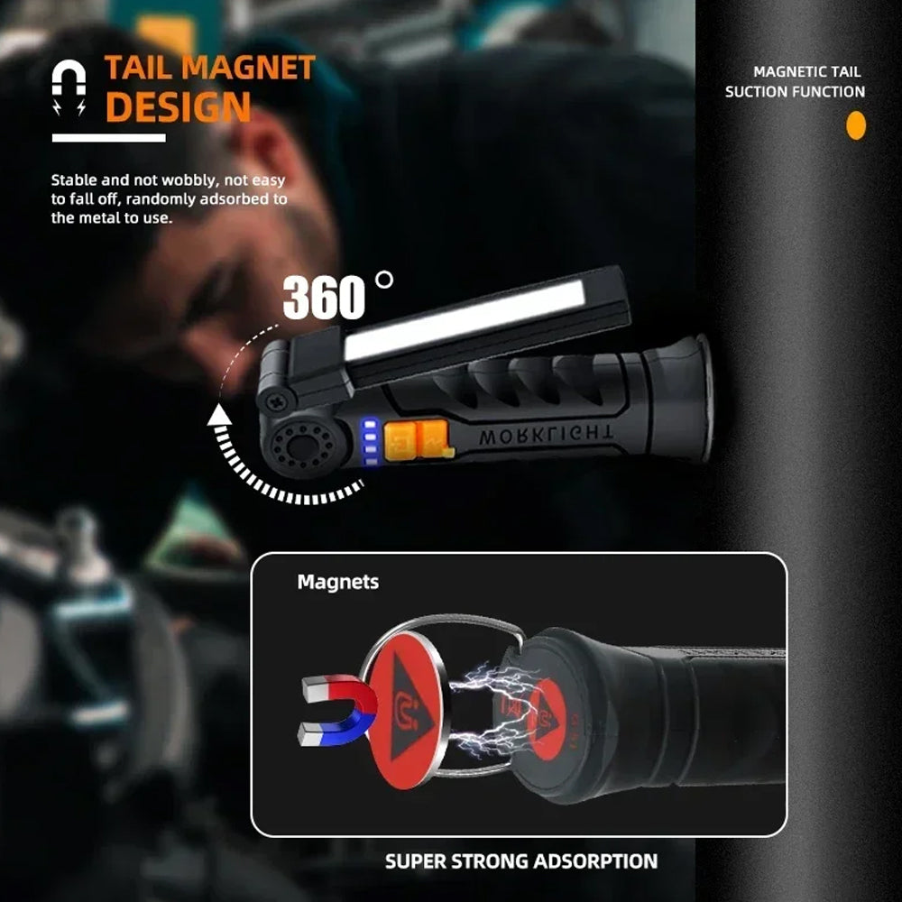 【Waterproof and Widely Used】Water-resistant, ensure the emergency light works fine on rainy or snow days. the COB work light is perfect for car repairing, emergency, camping, traveling, hiking, Fishing, CNC lathes, maintenance, workshop, garage, power outages, home lighting, work at night and working under the hood. (BUT DO NOT PUT IN WATER)