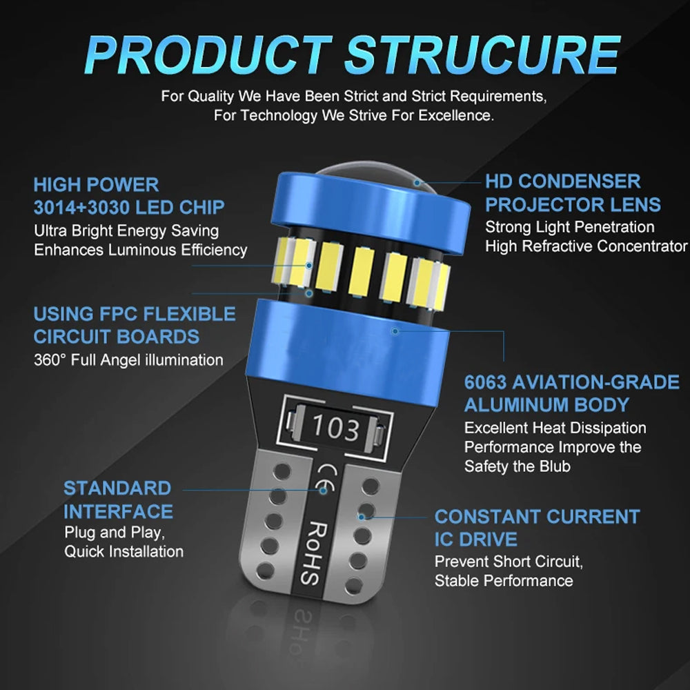 2pcs T10 3000K Gold 19SMD Canbus LED Bulbs Super Bright 194 W5W T10 LED Globes