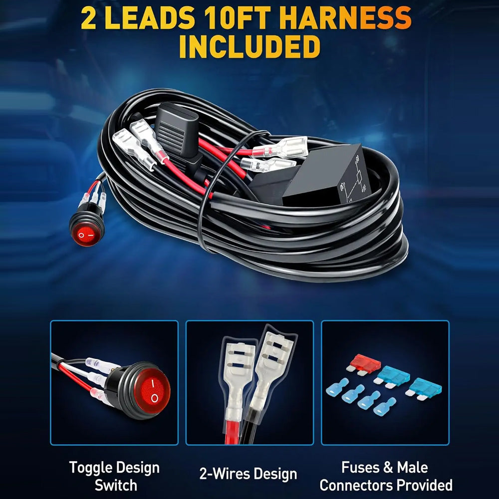 [Superior Accessories Supplied] - Our led fog lights come with a 10ft 2 leads wiring harness, which includes a 40A power relay and inline blade fuses, offering multiple layers of protection and ease of use. Additionally, the 45° adjustable irradiation bracket kit facilitates easy adjustment of the light beam direction, fulfilling your requirement for versatile illumination range!