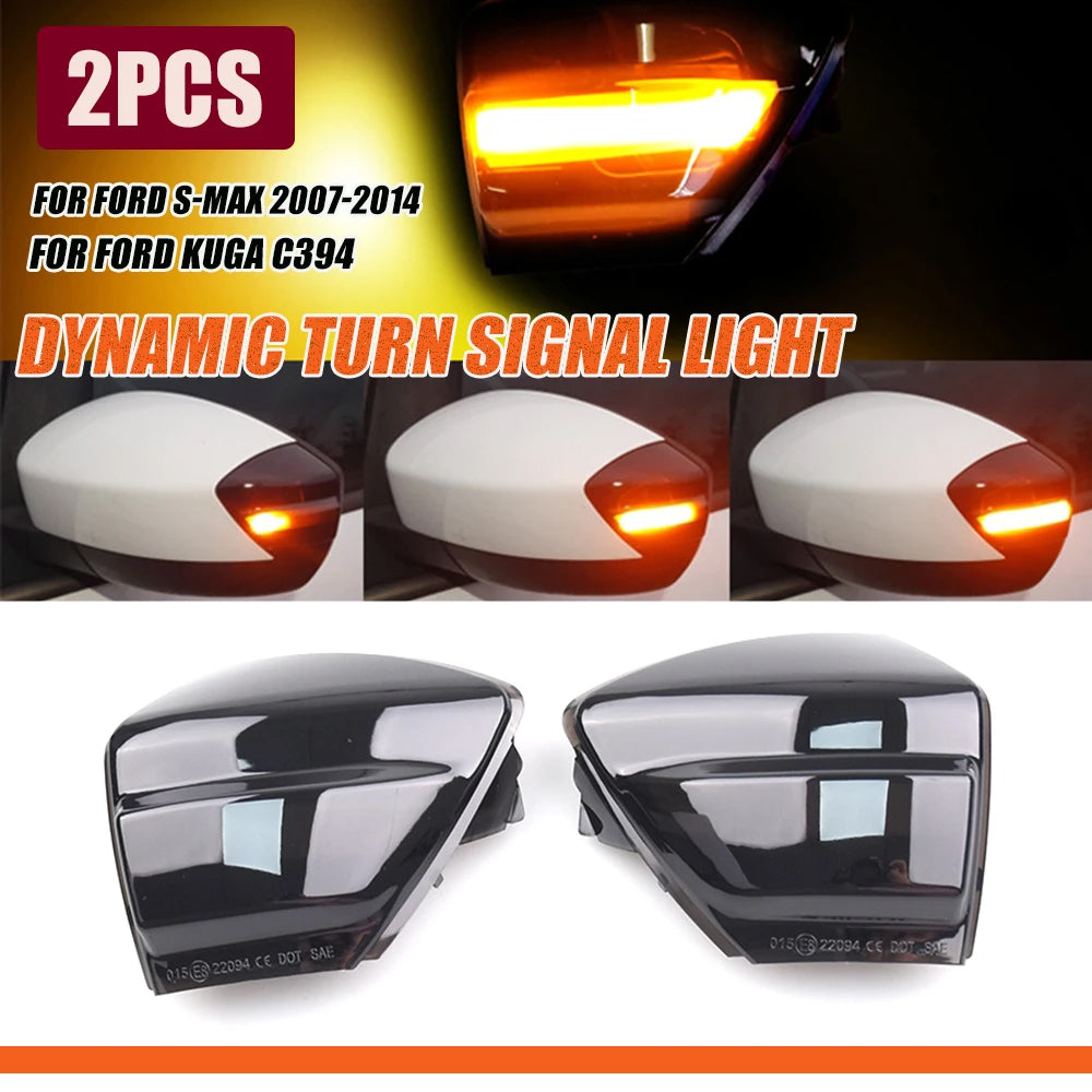 2X For Ford S-Max 07-14 Kuga C394 08-12 C-Max 11-19 LED Dynamic Turn Signal Light Side Mirror Sequential Blinker Indicator Lamp