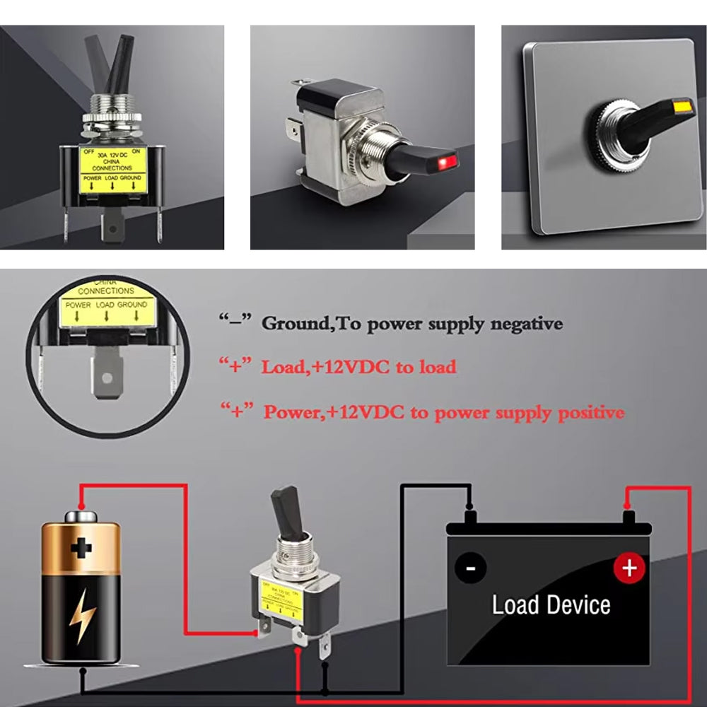 - Feature: The rating is 30A 12VDC LED .The LED will illuminated when the switch is turned on. Illuminated Toggle Switch.