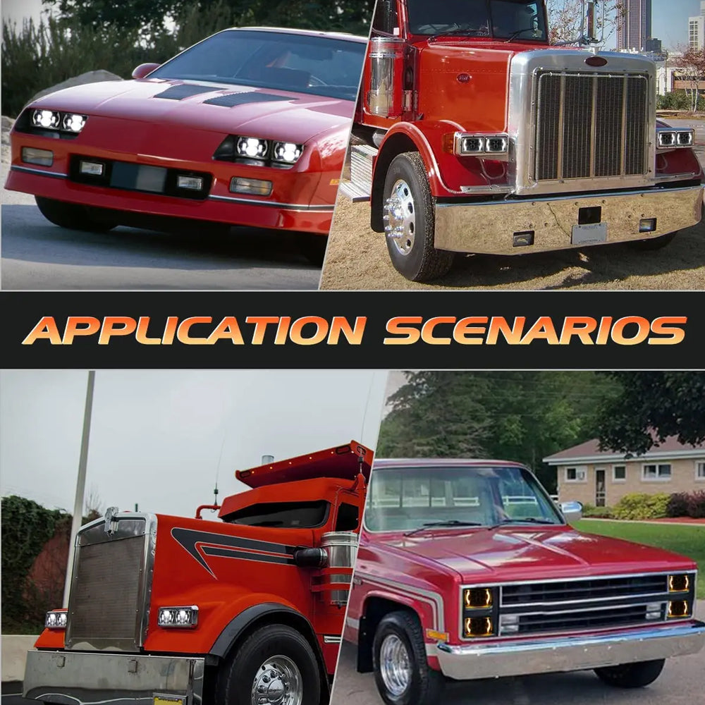 Compatible with Headlights: H4651 H4642 H4652 H4656 H4666 H4668 H6545. Fits in 1982-1992 Chevy Camaro Iroc-Z,1979-1993 Ford Mustang, FREIGHTLINER FLD120 112 FLD, Peterbilt Rectangular Headlights 379 378 357,Kenworth T800 T400 T600 W900B W900L Classic 120/132 HK classic, Trucks with 4*6 inch sealed beam installation hole, Old car with 100x165 mm sealed beam installation hole, Off Road Vehicles, forklifts, tractors, trucks, engine ATV's, Heavy Duties, Etc.