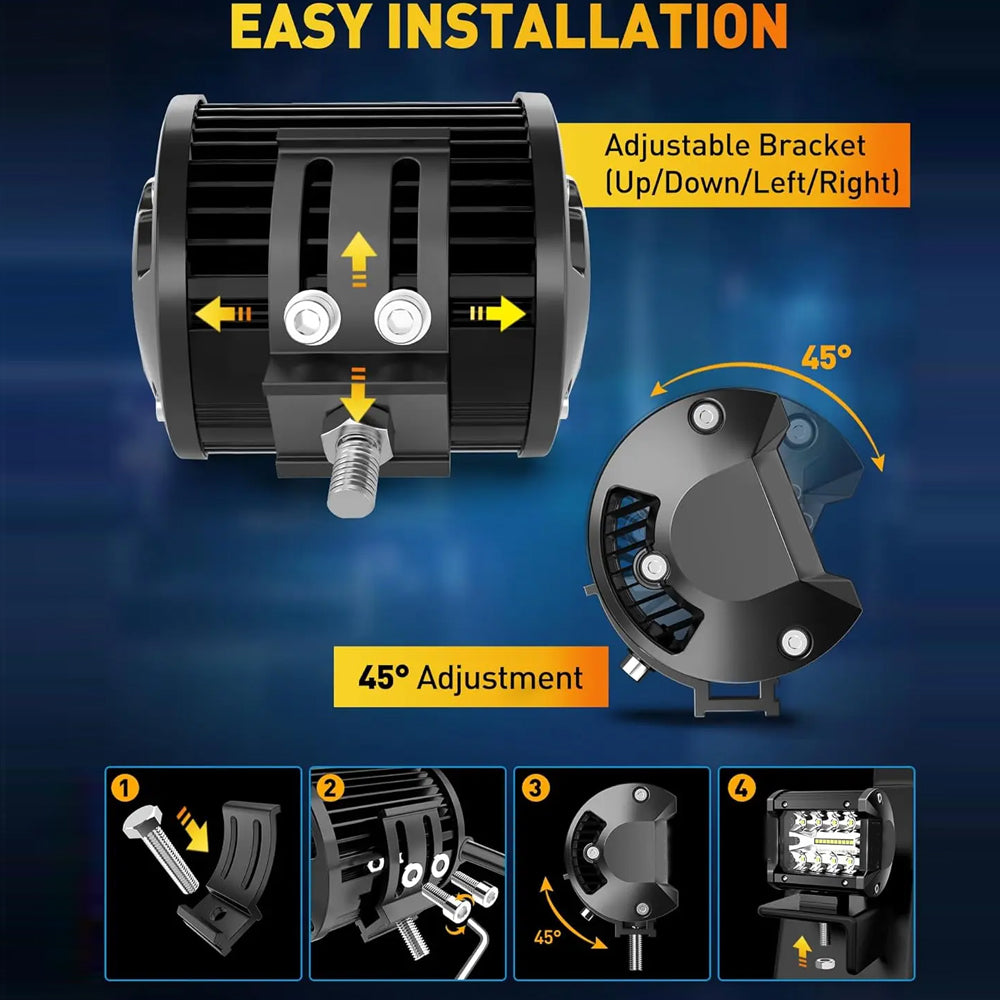[Outstanding Performance] - The light pods kit adopts aluminum housing and advanced sealing technology, waterproof level reaches IP68. Paired with a long-lasting PC lens, it withstand rain, snow, sandstorms, and harsh conditions. Plus, equipped with 10 cooling fans for efficient heat dissipation, offering a lifespan of up to 50,000 hrs, using it with confidence without concerns about frequent replacements!