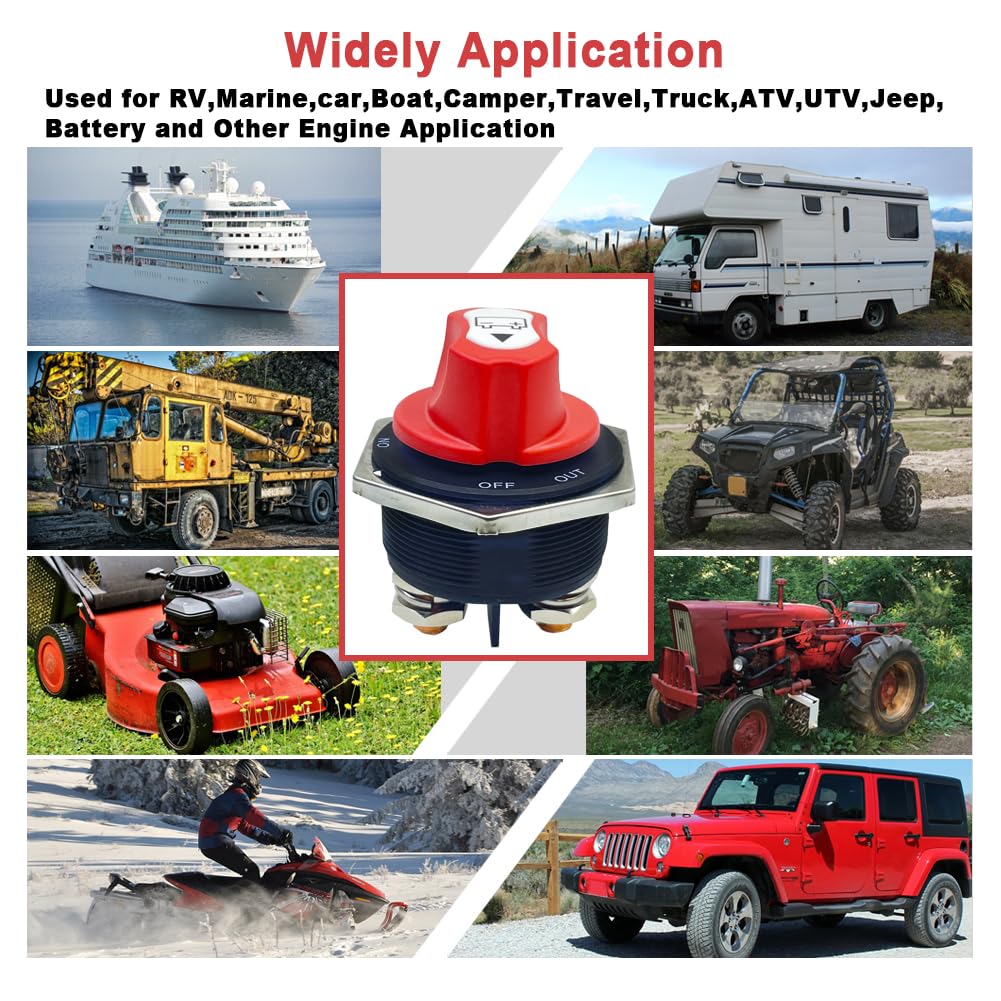 Here we have 12V 300Amp Heavy Duty Isolator Switch Battery Disconnect Switch. Widely used for Motorbikes, Cars, RVs, Truck, Caravan, Marine Boat, ATVs, UTVs, etc.