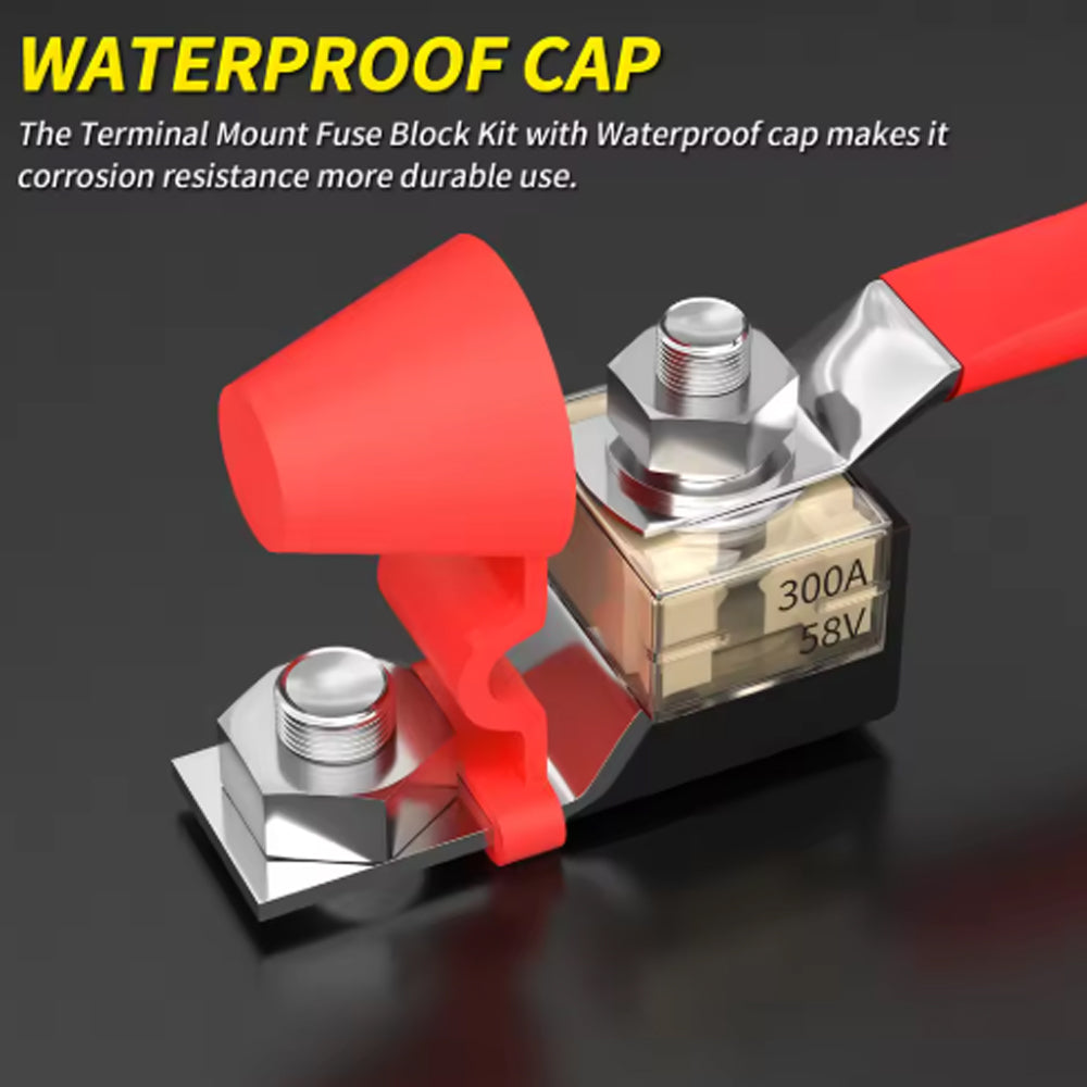 - Wide Application: This Terminal Mount Fuse Block Kit can be widely used in new energy vehicles, RVs, cruise ships, cranes, batteries, charging piles and other DC main power.
