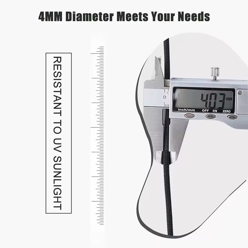 ▲HIGH QUALITY :This Paracord diameter is 4mm with a 9 Strand Inner-core, each strand have 3 yarns.Because of high standards of quality it has a static strength rating of 650 pounds.