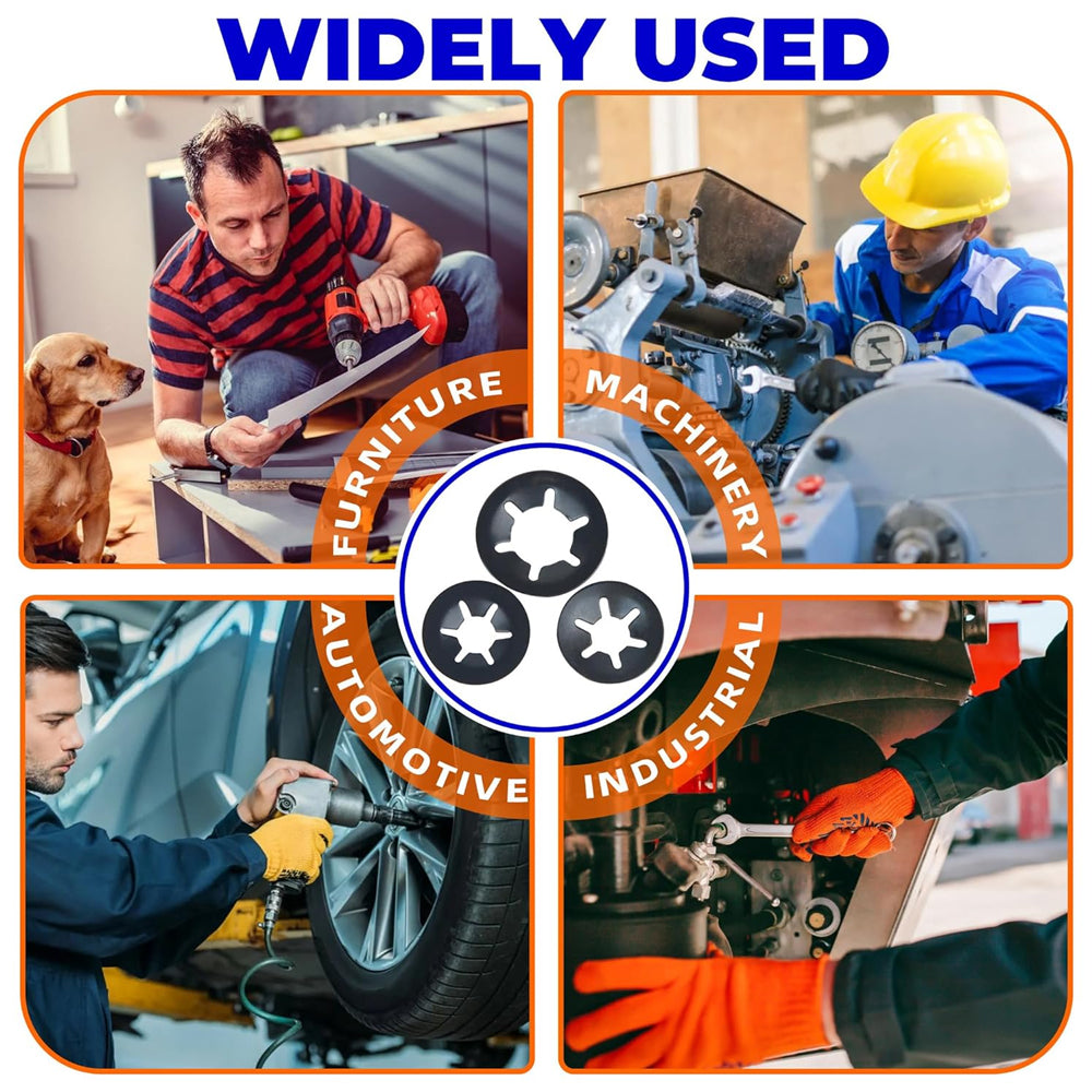 *Wide Applications: Internal teeth car body washers fit machinery, vehicles (cars/trucks/RVs/boats), lawn equipment, and DIY repairs for quick fixes and durable fastening