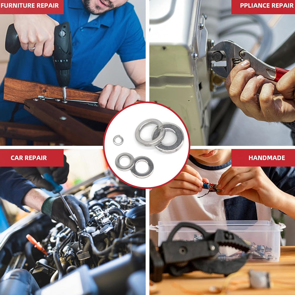 【Wide Range of Applications】: These flat washers are suitable for interior decoration, outdoor construction, electrical maintenance, and furniture repair. They're ideal for electrical connections in household and commercial appliances, as well as automotive and marine applications with threaded or bolt-type connections.