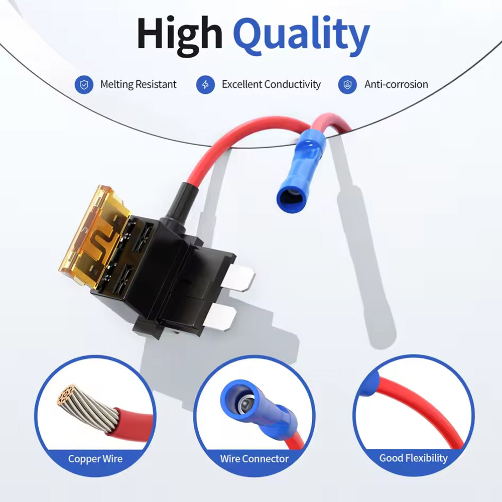 *【Product Advantages】The fuse tap boasts impressive flexibility and resistance to melting, ensuring durability and reliability even in demanding conditions. Its excellent conductivity guarantees that your additional circuit will operate smoothly without any interruptions or malfunctions, providing peace of mind for your vehicle's electrical system.