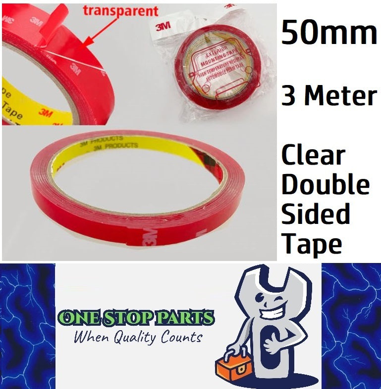 Here we have a new 3 Meter roll of 50mm wide double sided tape, very clear transparent in appearance making this ideal for windows and positions where you want to not have the tape stand out.