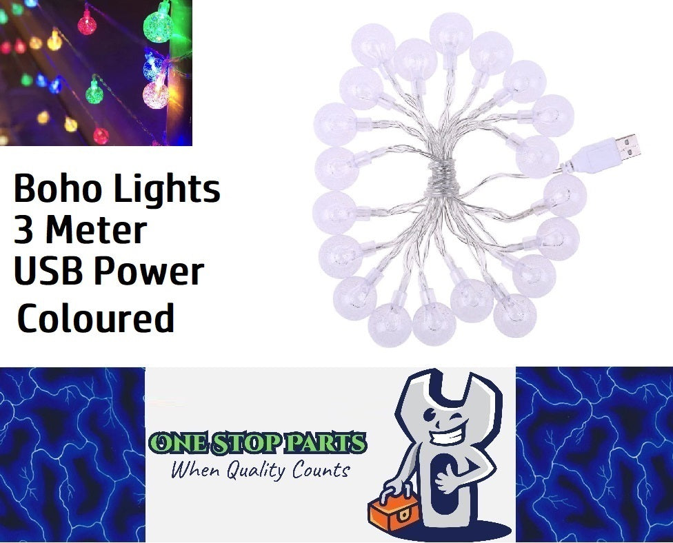 3m Multi Coloured 30 Crystal Ball Garland String Lights USB Powered