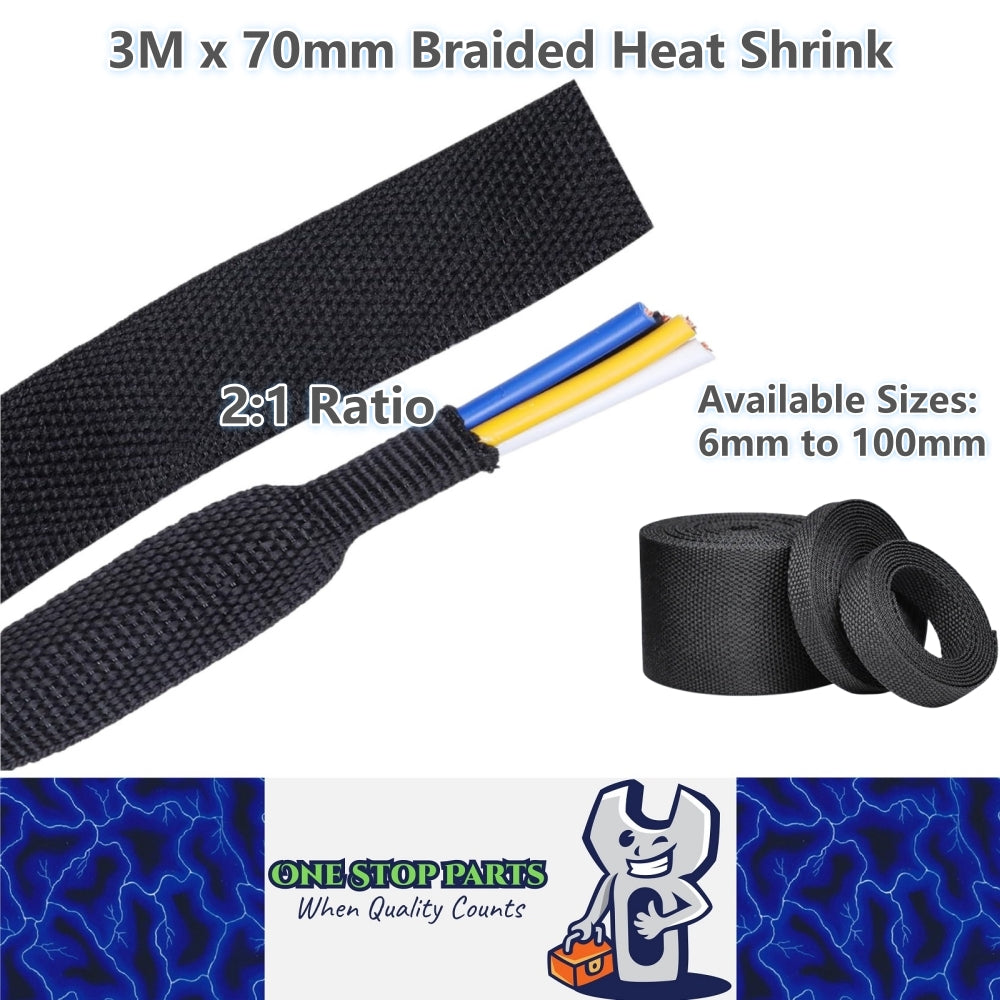 3M x 70mm 2:1 Black Heat Shrink Braided Sleeve Shrink 70mm to 35mm heat shrink