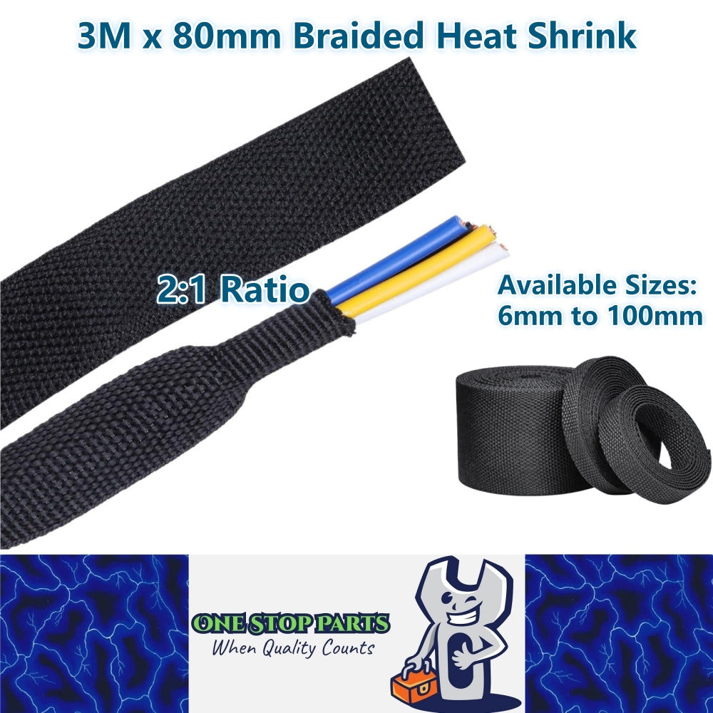 3M x 80mm 2:1 Black Heat Shrink Braided Sleeve Shrink 80mm to 40mm heat shrink