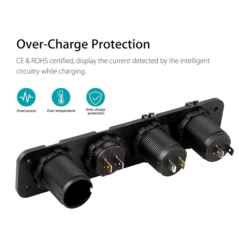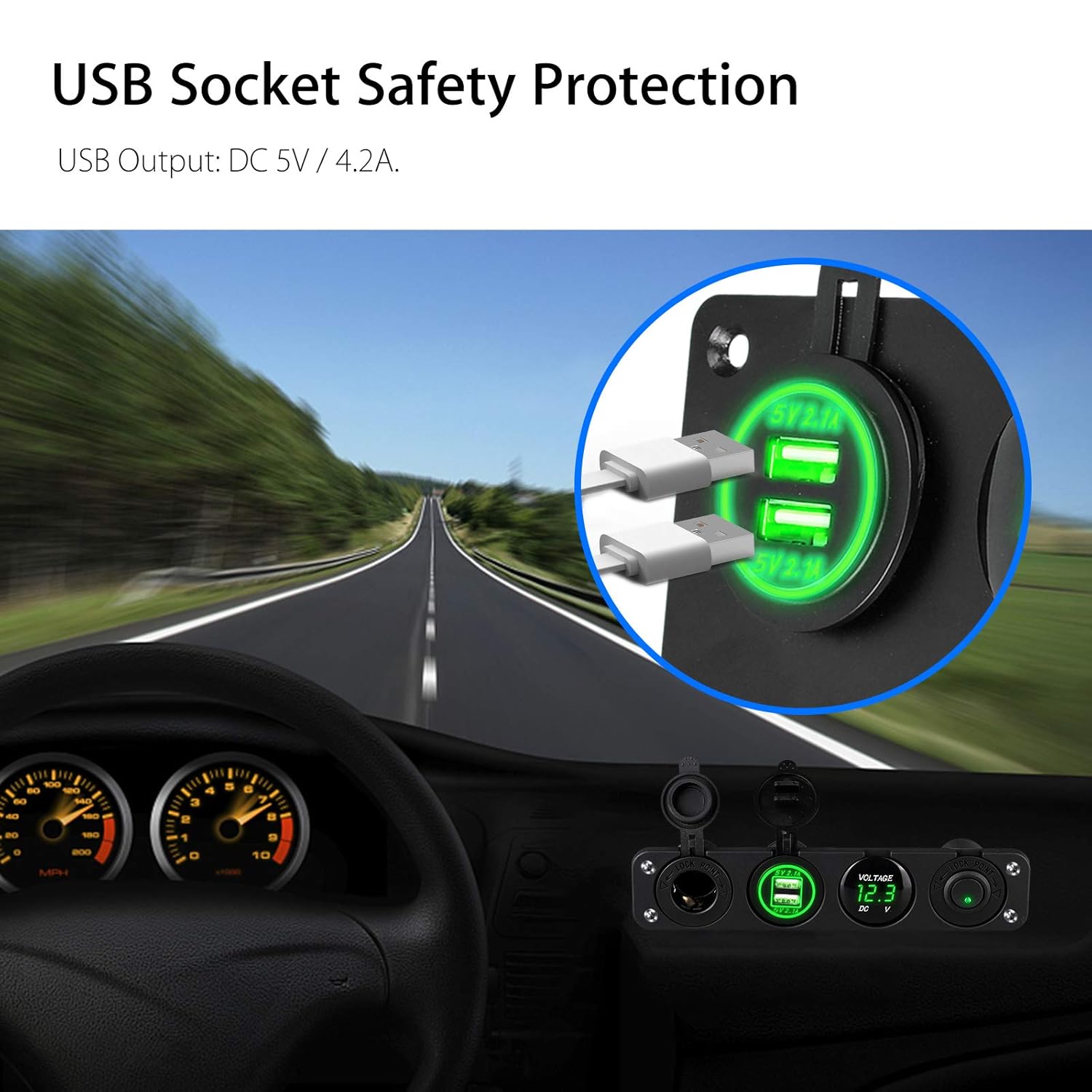 4 in1 Red LED Switch Panel 12V Dual USB Charger Voltmeter and Power Socket