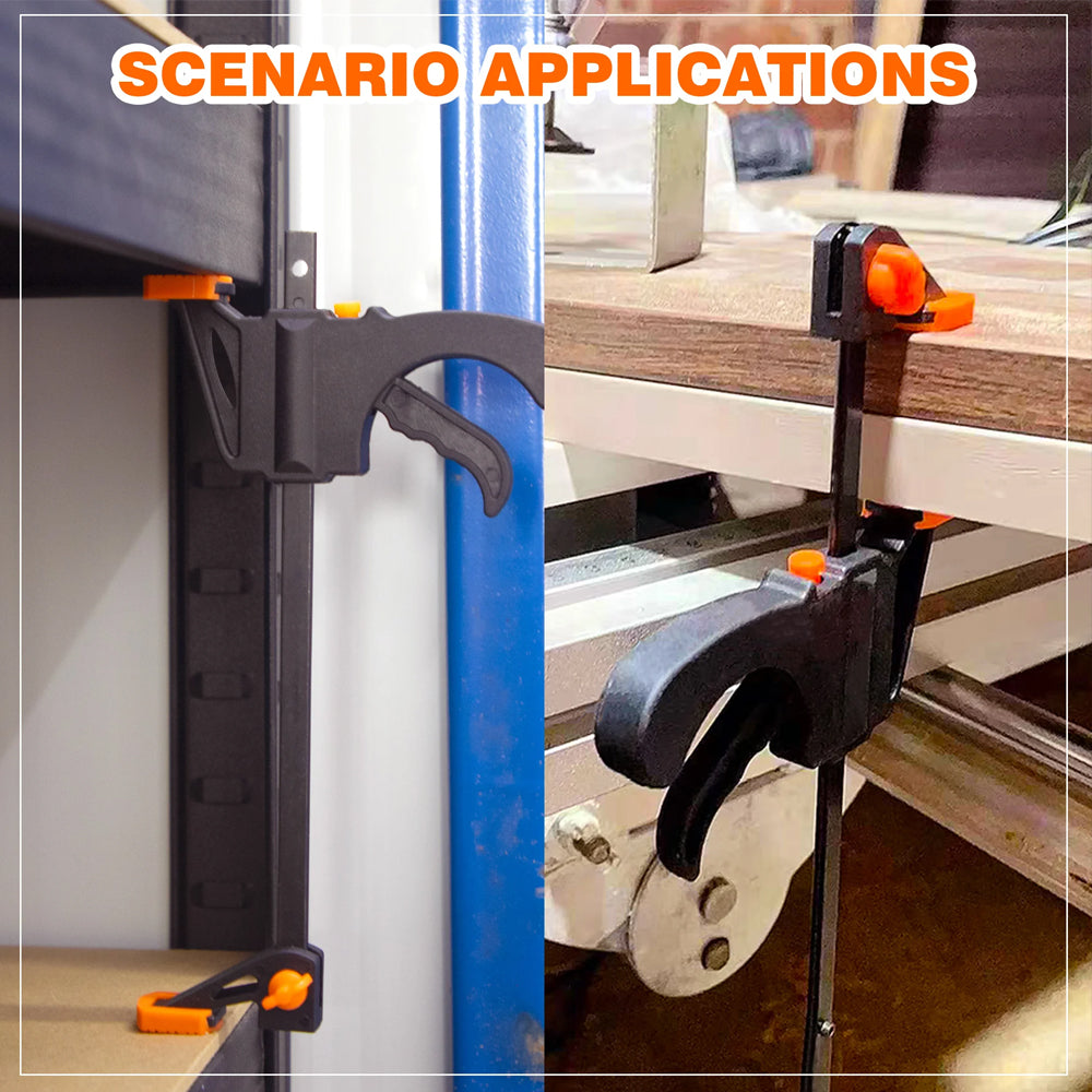 【One-Handed Clamp】One handed release F clamp is adopted new grip and trigger design provides simple, you can operate with one hand. Spreader bar grip is comfortable to hold, press quick-release button to slide arm into desired length.
