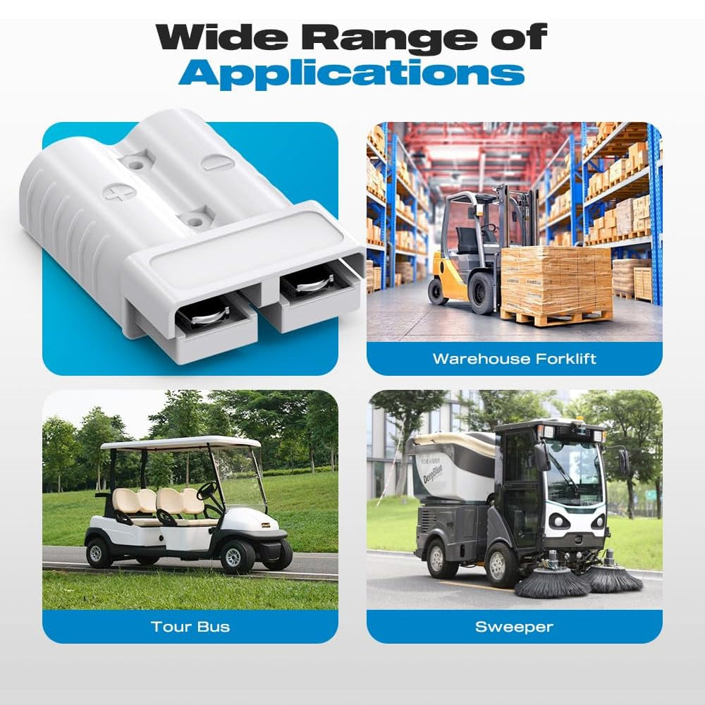 Multipurpose Connection: This quick connect battery connector is suitable for automotive, ATV and RV winches, elevators, cranes, boats, forklifts and trailers, etc.