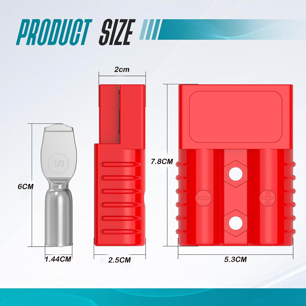 Please verify your application requirements before purchase - these are RED 175A connectors for 4-1/0 AWG cables. Connectors of different colors or amperage ratings (120A, 350A) are NOT compatible with this model. Matching both color and amperage rating is essential for proper connection