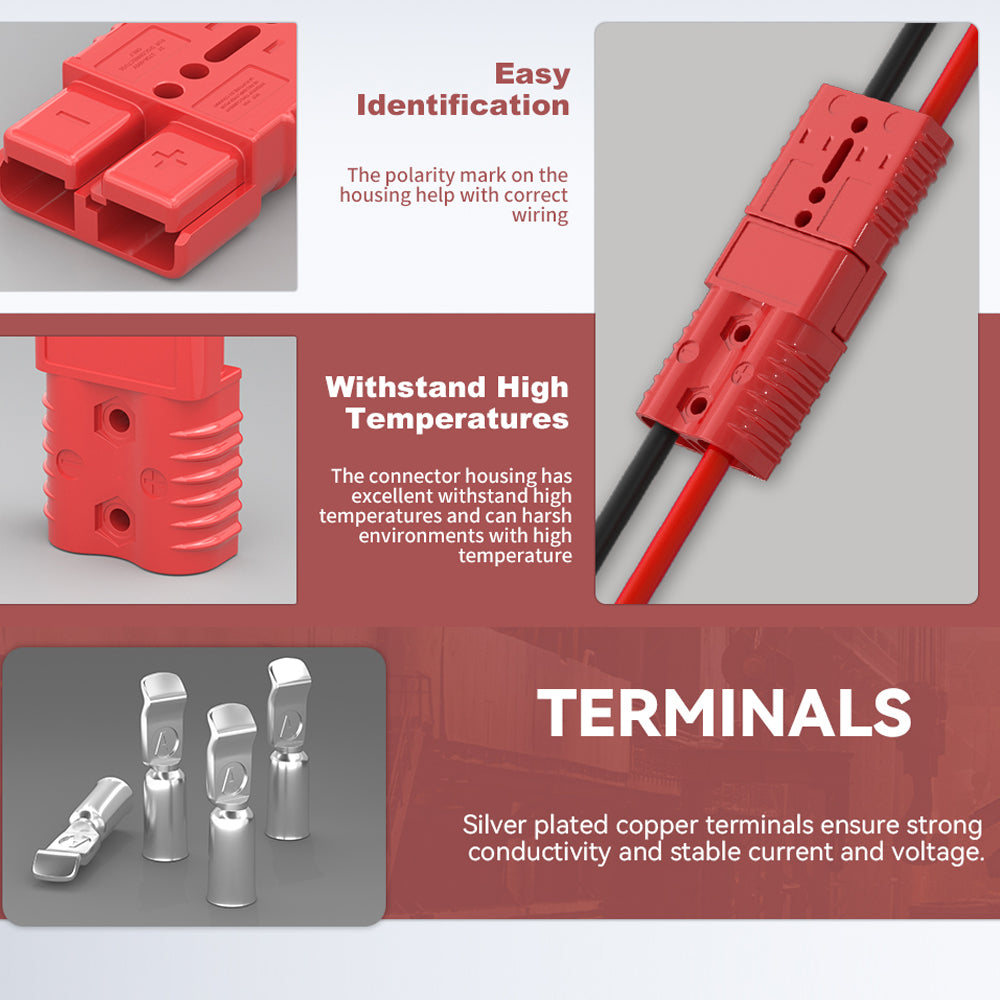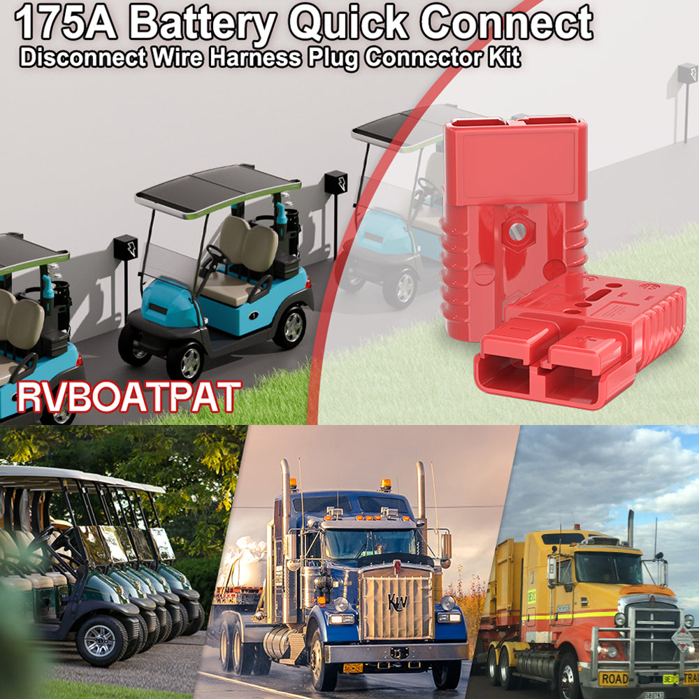 *【Product Information】This set of battery quick disconnect connector is suitable for 4 AWG, 2 AWG, 1/0 AWG cable; max voltage: 600V; max current: 175 Amp.