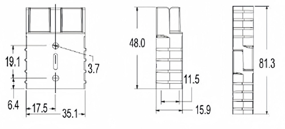 This 50amp style is by far the most common used on 4wd and caravan applications and is compatible with most common 50amp connectors.