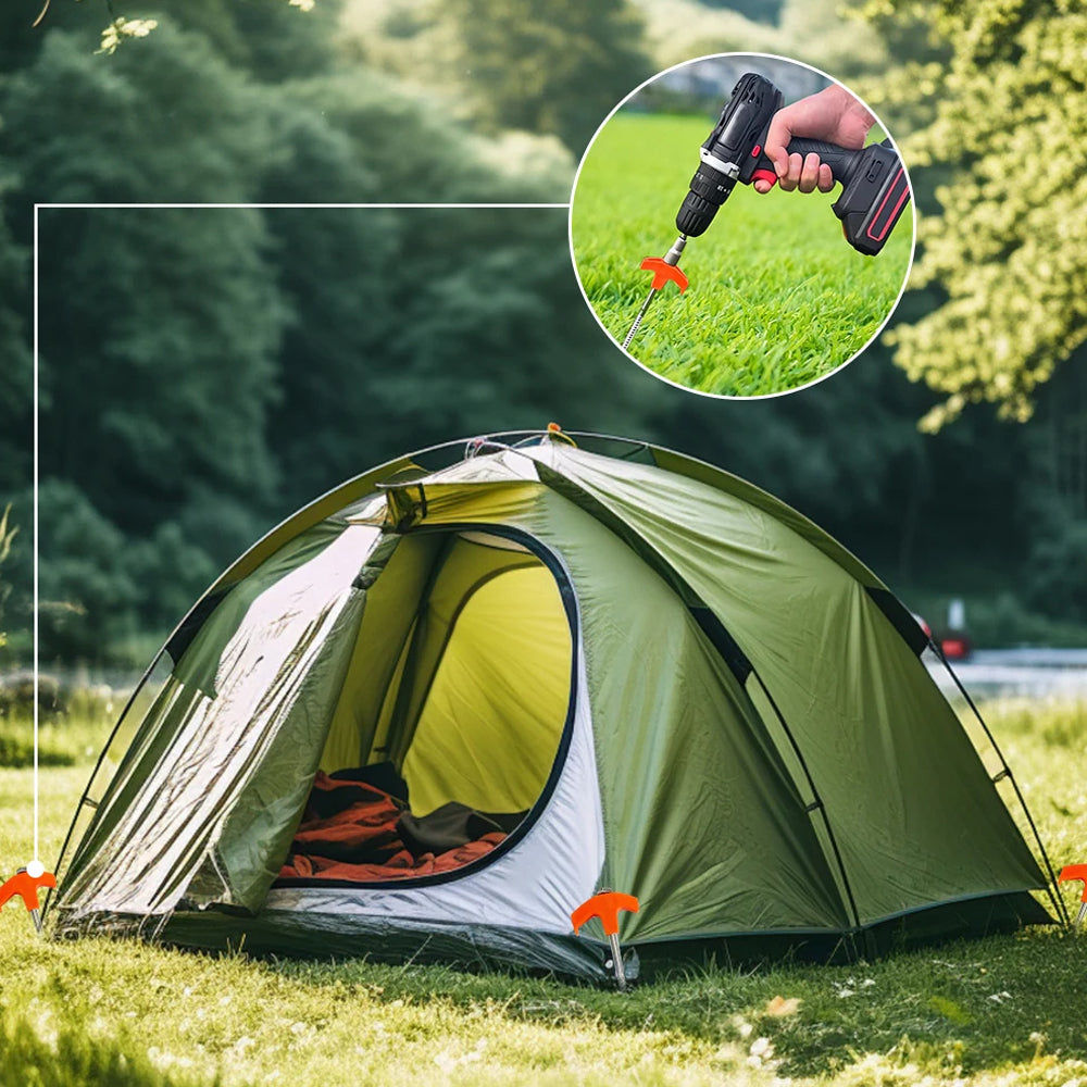【Effortless Set Up】— With the help of a cordless drill or impact driver, these easy-to-use tent stakes will have your tents, canopy, gazebo, awning, guy lines or tarps secured to the ground in seconds.