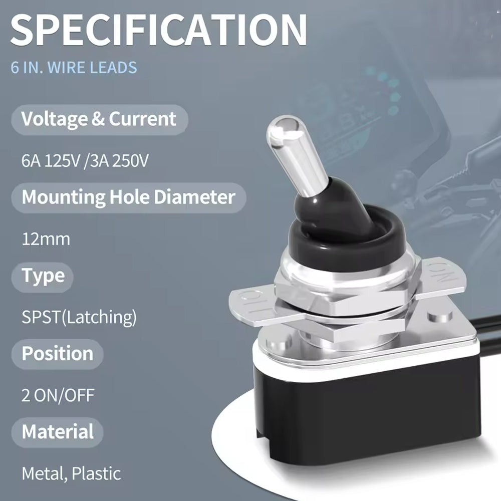 Great Quality: This marine toggle switch is made from metal and plastic with 6 inch leads. The mounting hole diameter is 12mm, it is easy to connect and has a long life cycle