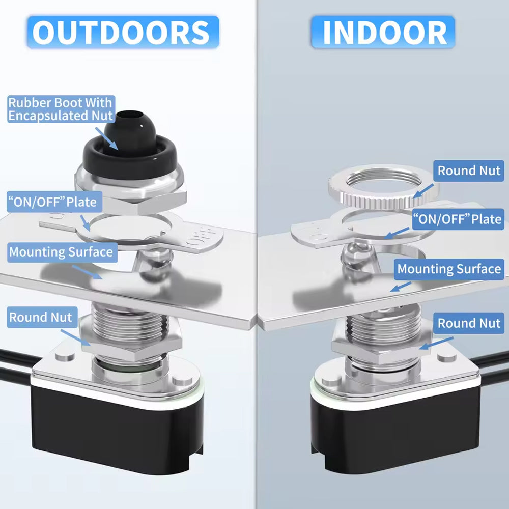Waterproof: The waterproof rubber cover can block liquids and dust, protecting the switch from damage. It is easy to install by simply tightening along the thread direction
