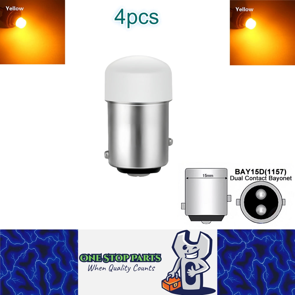 4 x Yellow BAY15D 1157 P21/5W 12V 9SMD 600LM LED Condensing Lens Yellow (4pcs)