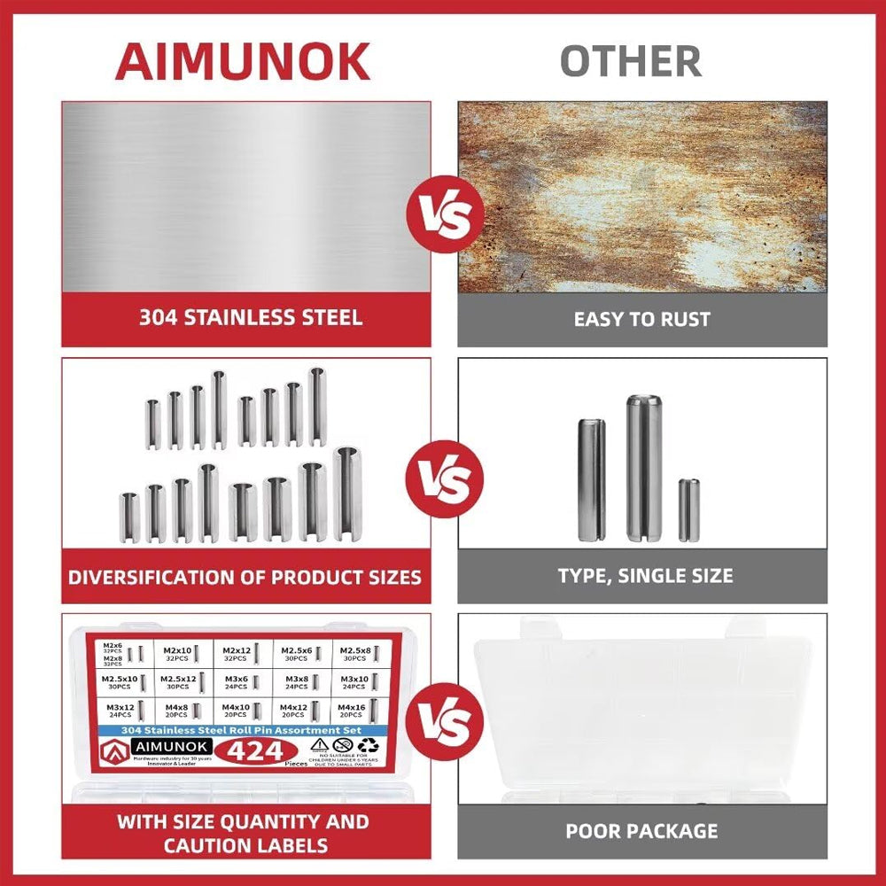 Item Size: The spring pin assortment set includes 424-piece spring steel pins, commonly metric sizes - M2 M2.5 M3 M4 dowel roll pins, wide range of sizes