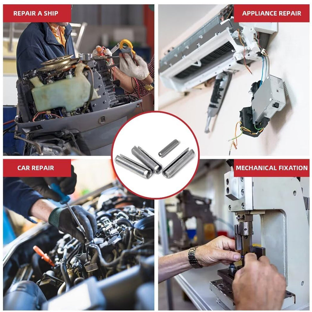 Wide Application: The slotted spring pin kit is useful in industrial production and home improvement, such as fixing mechanical installations, repairing electrical appliances, guns, cars, trucks and boats, etc