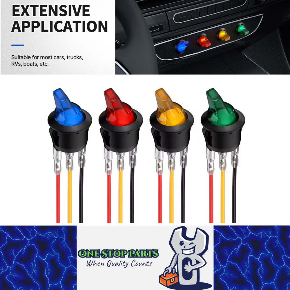 LED Lighted - This 12v toggle switch is led illuminated design, available in blue, red, amber and green, 4 colors in one pack for meeting various demands.