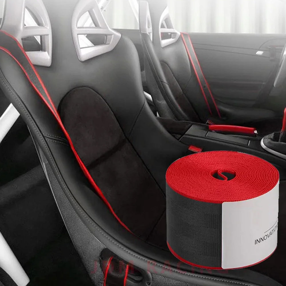4x 3.6M Black/Red Strengthen Car Seat Belts Webbing Fabric Car Safety Seatbelts