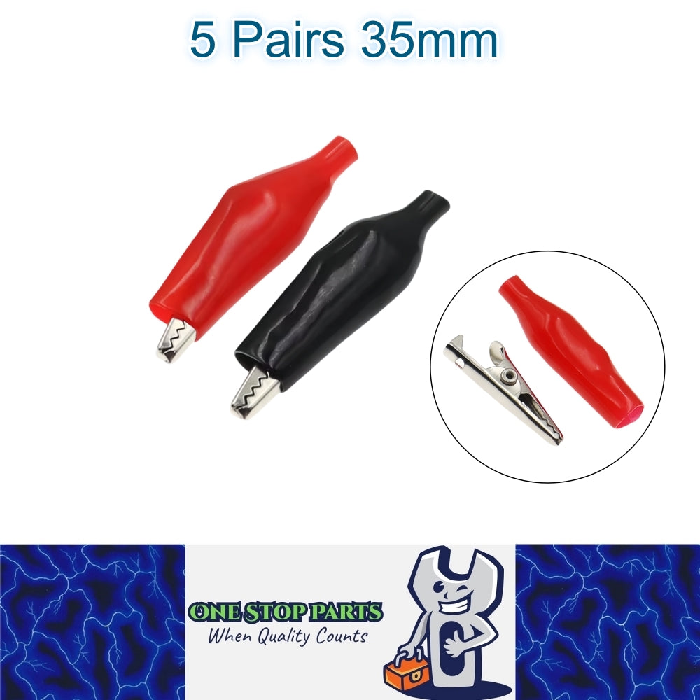 Here we have on offer is 5 Pairs Alligator Clips Clamps 35mm Black and Red Crocodile Alligator Jumper Electrical Test Clips (10pcs).