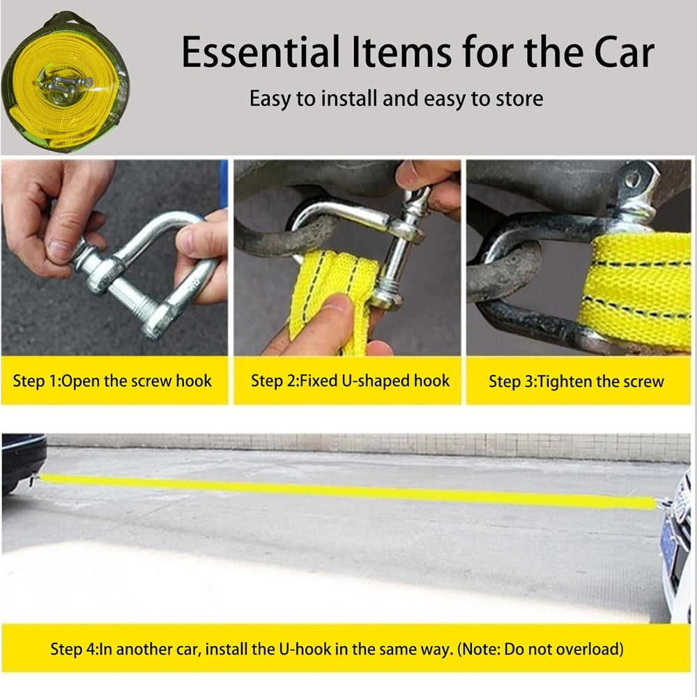 - Durable & Corrosion Resistant: The 4M x 41mm towing strap uses tear-resistant, weatherproof polyester webbing—no stretching, fraying, or snapping under heavy stress.