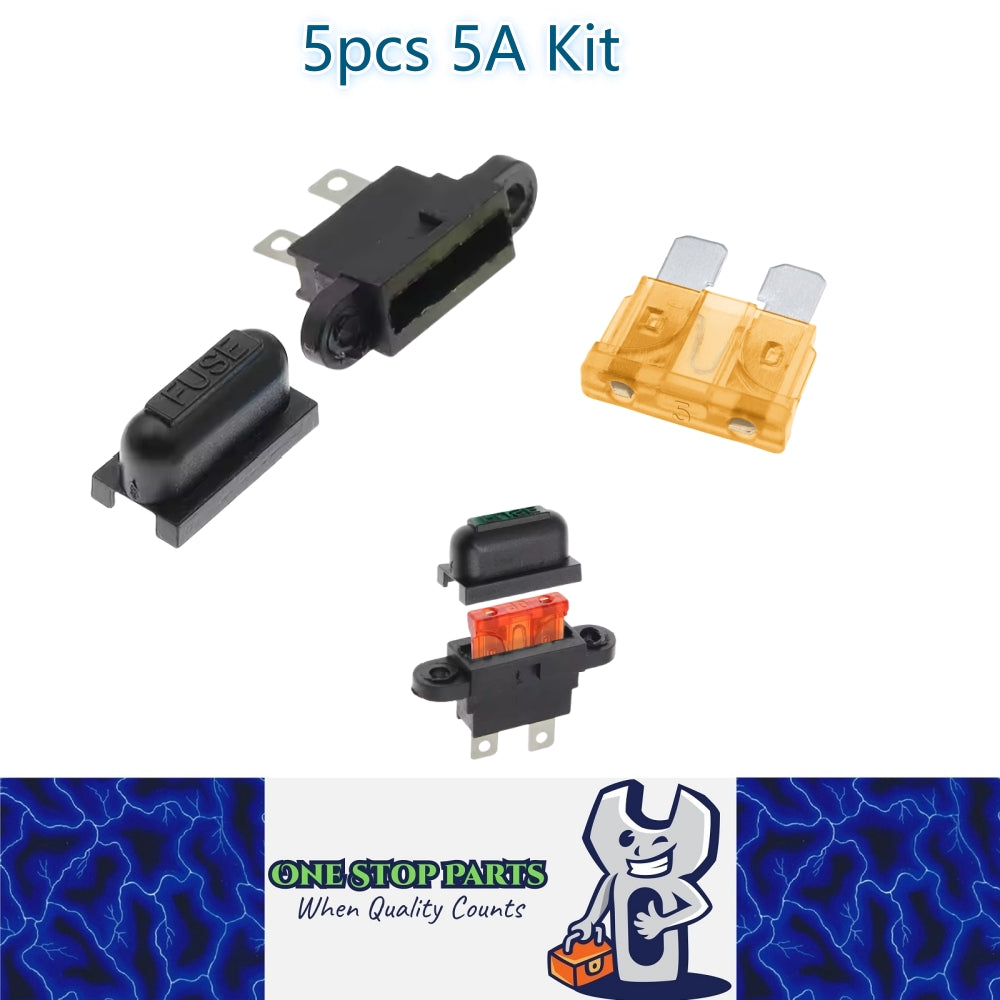 This package includes 5pcs Standard Inline Fuse and 1pcs Fuse Holders with Black insulating cover.