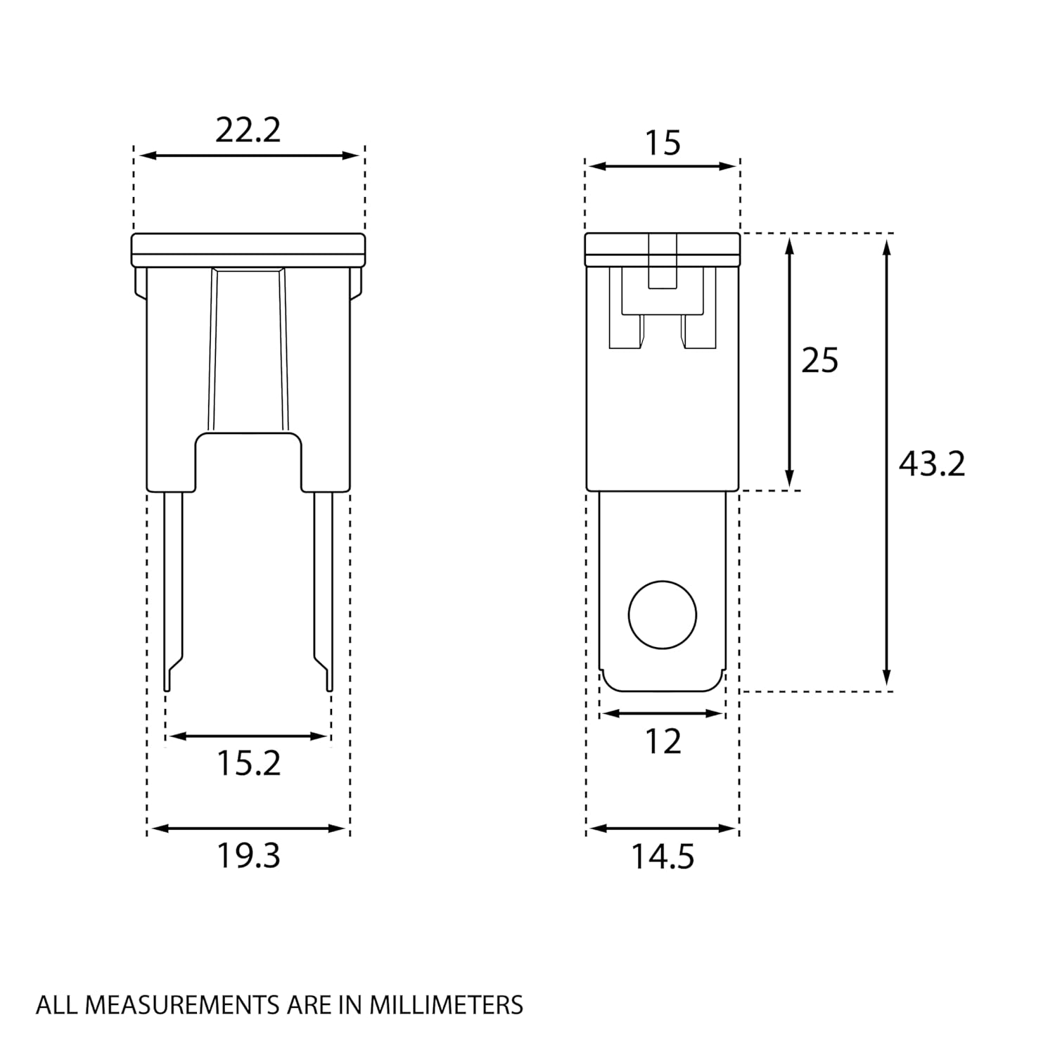Total Size: 15mmx22mm x 43mm High