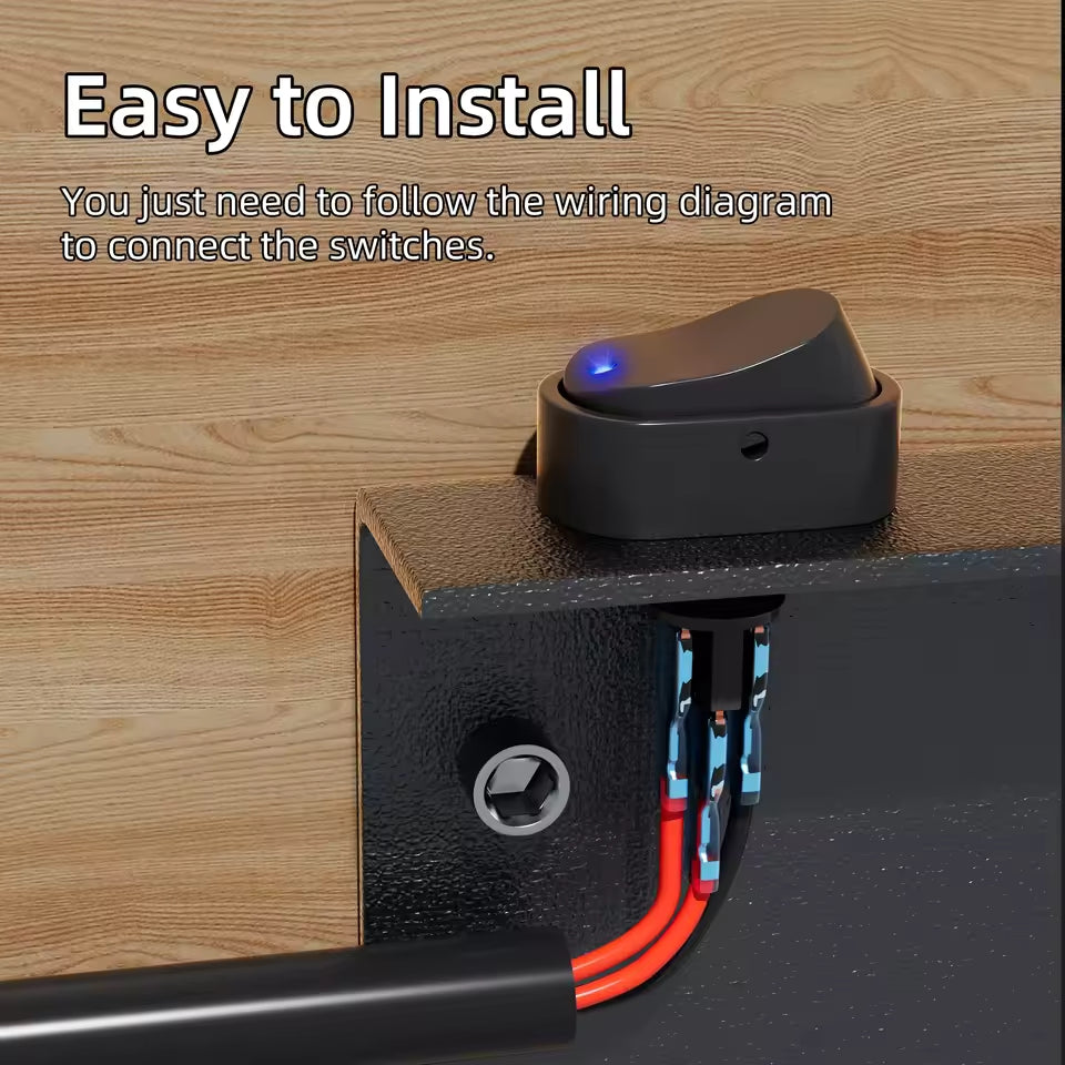 【Easy to Install】 - Fix the 12 volt switch in the installation position, please pay attention to the direction and position of the terminals. Then, connect the rocker switch into the circuit, ensuring the wiring is both correct and stable. Finally, don`t forget to perform a switch test to verify its functionality.