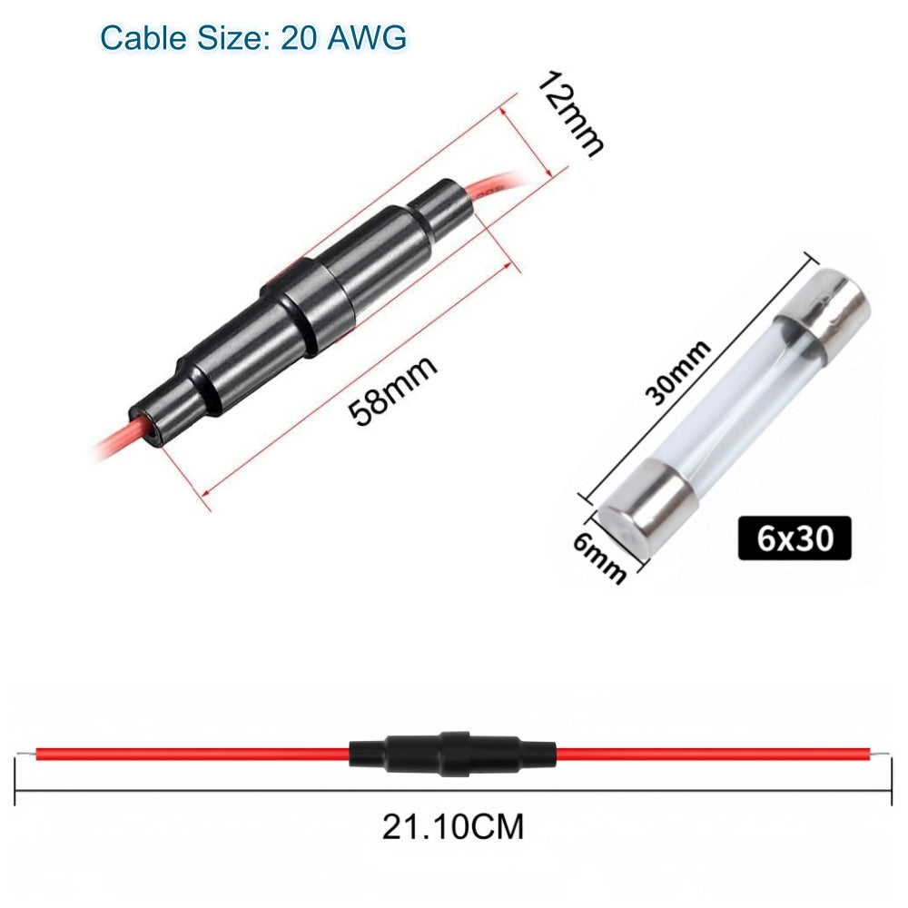 5 x Inline Glass Fuse Holders with 6mm x 30mm Long 2A Glass Fuses 20 AWG Wires