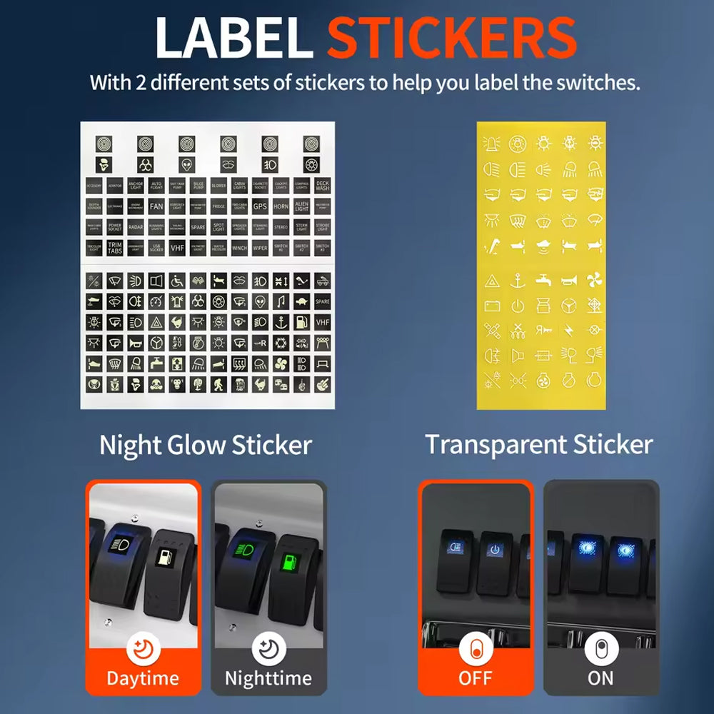 *DIY Sticker: The package of this boat switch includes two type of stickers: transparent sticker and night glow sticker, which provide more options for the customers to make their own boat rocker switch.