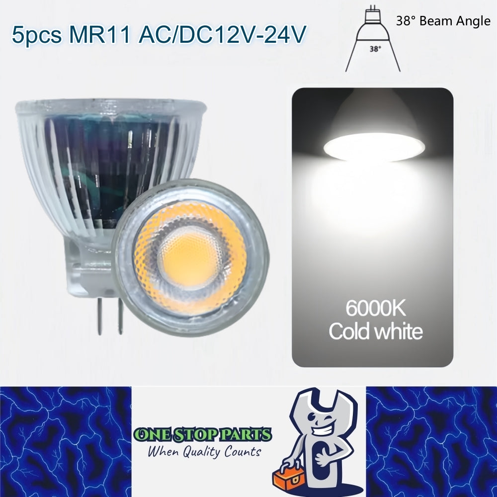 5 x MR11 3W LED Spotlight AC/DC 12V-24V 38° 6000K Cold White Glass Downlight