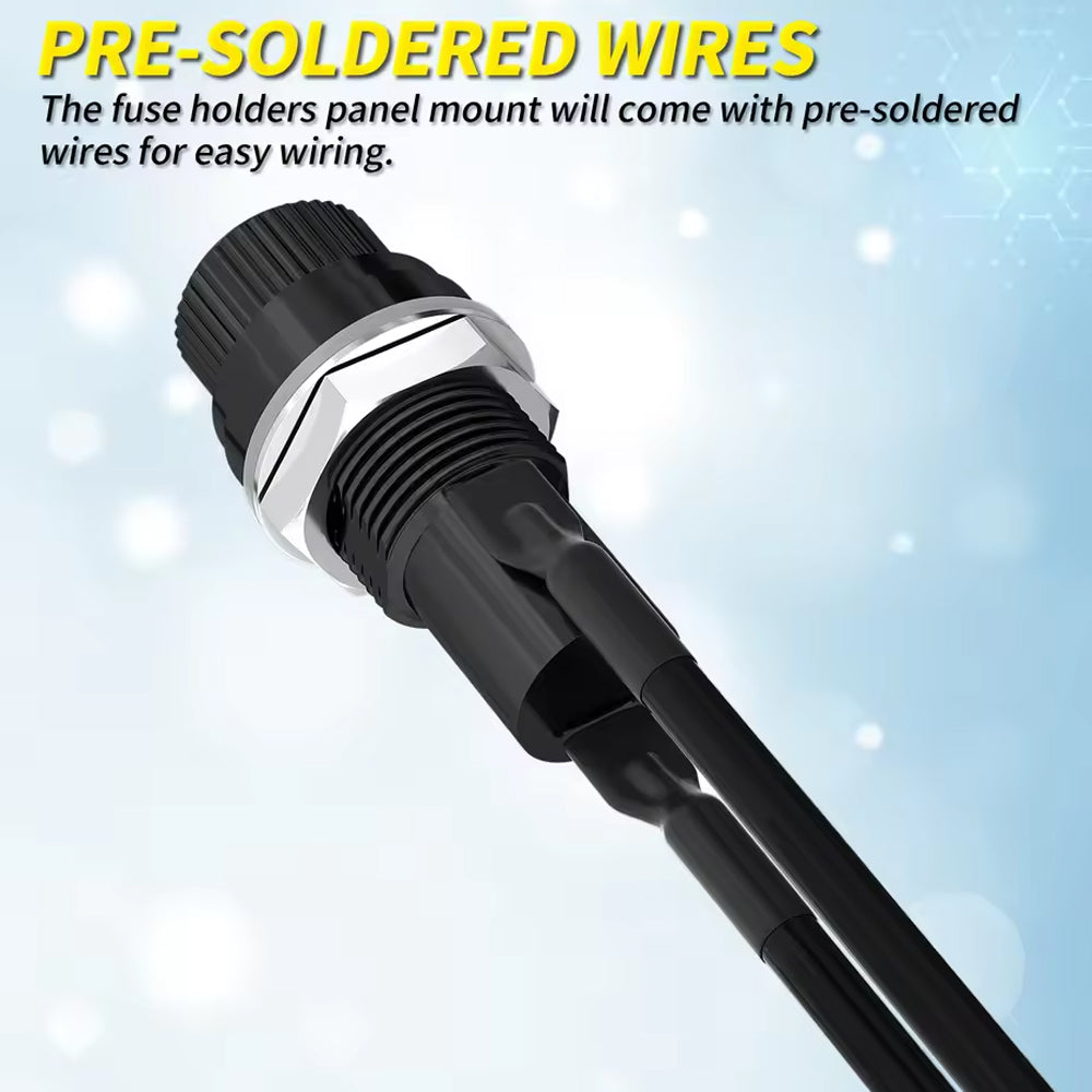 Easy to Use: Fuse Holder Panel Mount is quite convenient for you to replace the burnt fuse. Once the fuse holder is installed, no more trouble of taking your devices apart again when the fuse is blow out. Besides, it also comes with pre-soldered wires for easy wiring